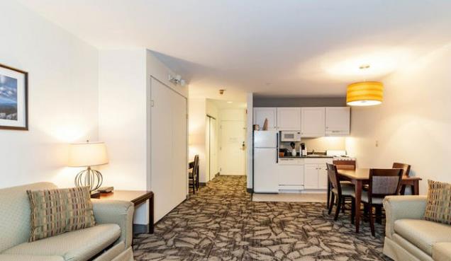 The Studio Room consists of a living area, fully equipped kitchen, dining area and one bath. At night, the living area becomes your sleep area with a pull down queen wall bed. Some units have balconies, but not all. Requests for balcony units are on a first come / first served best efforts basis. Units adjoin to Standard Hotel rooms for additional sleeping. Our Studio Deluxe Rooms feature an additional Queen Sofa Bed for sleeping up to two additionl guests.